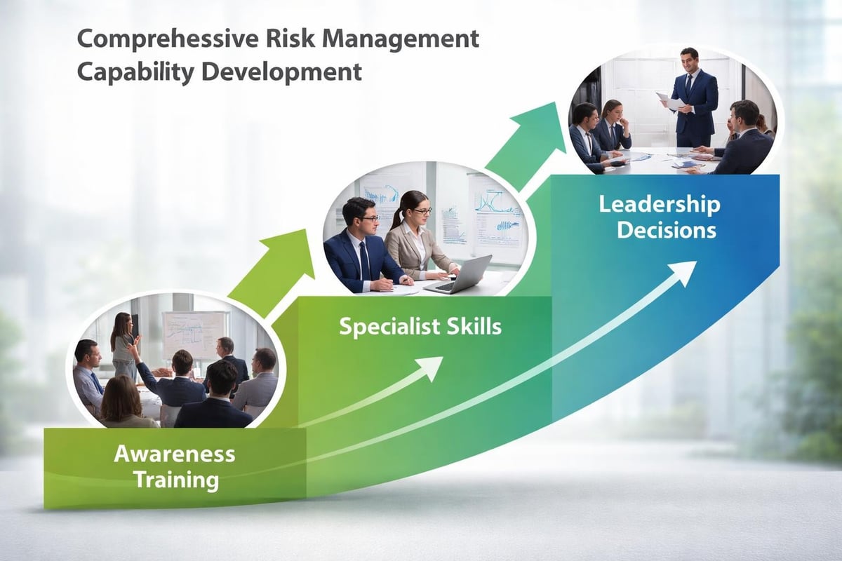 Risk management capabilities must extend throughout the organisation rather than concentrating in specialist functions. Personnel at all levels need appropriate knowledge to identify risks within their areas of responsibility and implement relevant controls.